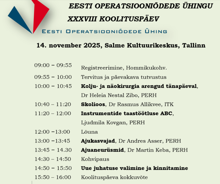 Eesti Operatsiooniõdede Ühingu 38. koolituspäev toimub 14. novembril 2025 Tallinnas Salme Kultuurikeskuses.
